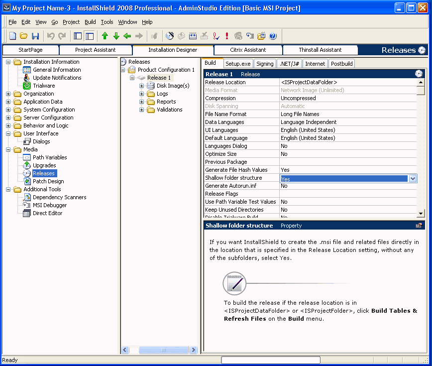 - Create a new Basic MSI Project in the InstallShield Editor.