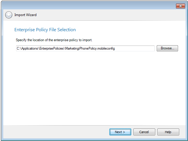 For information on enterprise policy files, see Managing iOS Enterprise Policy Configuration Files.