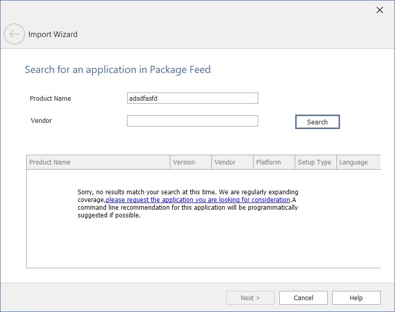 Import Wizard / Search for an Application in Package Feed