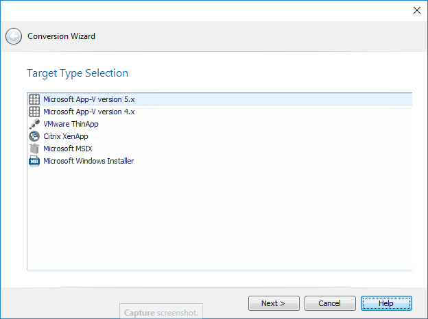 In addition to converting App-V 4.x packages to App-V 5.0, you can also use the Conversion Wizard to convert Windows Installer and legacy installers to App-V 5.0 format. See Using the Conversion Wizard to Perform Express Conversion to Virtual Packages or Automated Repackaging.