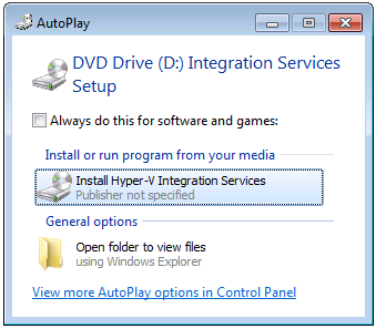 - Click Install Hyper-V Integration Services .